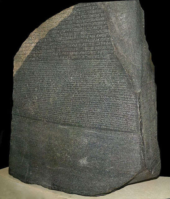 | A Pedra de Roseta. Atualmente se encontra no Museu Britânico em Londres. |
