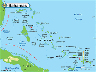 Localização da ilha Nova Providência e da capital Nassau, nas Bahamas.