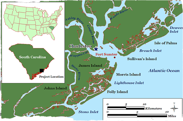 Localização da baía de Charleston e outras localidades.