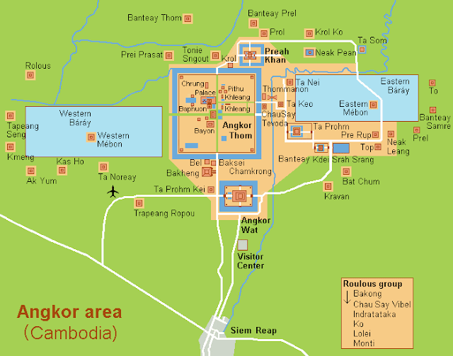 | Mapa da cidade de Angkor, com seus principais monumentos. |