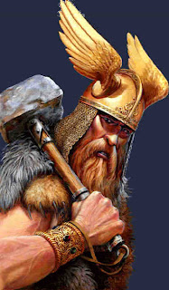 | Thor, o deus dos trovões e raios, um dos principais deuses cultuados pelos vikings. |