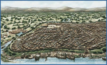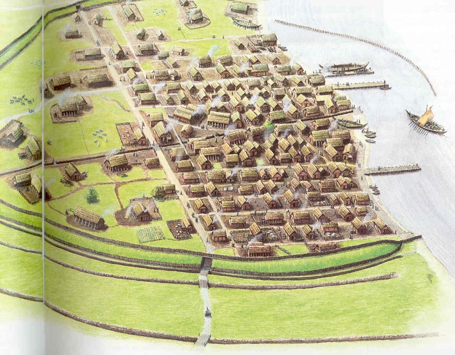 | Reconstituição da cidade de Dublin sob o governo viking. Irlanda. |