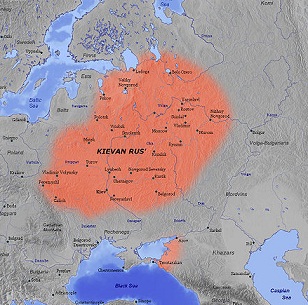 | Os lagos Ladoga e Onega, na Rússia, próximo com a fronteira da Finlândia. No começo do século IX, os vikings já estavam estabelecidos nessa região. |