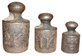| Alguns dos pesos usados na época, os quais foram destruídos pelos quebra-quilos. |