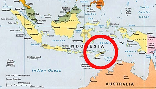 | Localização da ilha de Timor. |