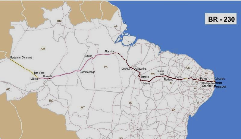 Outra obra também monumental para a época, não chegou a ser concluída, se tornando um dos grandes fiascos do governo ditatorial. Foi a empreitada da Rodovia Transamazônica, hoje mais conhecida como BR-230. Iniciada no governo de Emílio Garrastazu Médici (1969-1974), a rodovia visava conectar alguns estados do Nordeste com a região Norte, a estrada inicia-se no município de Cabedelo na Paraíba, e segue até o município de Lábrea no Amazonas, passando pelos estados da Paraíba, Ceará, Piauí, Tocantis, Pará e Amazonas, totalizando 4.223 km de extensão. Oficialmente a obra foi concluída, mas na prática não é bem assim. A maior parte do trajeto da rodovia nos estados do Pará e Amazonas até hoje não foi asfaltado, e nos outros estados há trechos esburacados. Ainda na época da Ditadura, muitos dos trechos ficaram apenas na terra, e nas áreas que cortam a floresta amazônica, as vezes a estrada quase desaparece, e nos tempos de chuva tudo se torna um lamaçal.