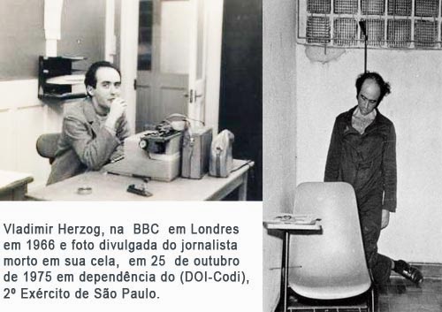 O jornalista, professor e dramaturgo Vladimir Herzog (1937-1975) nos anos 70, trabalhava na TV Cultura, e era militante comunista. Vlado como era mais conhecido pelos amigos, sempre procurou alguma forma de mostrar ao povo a verdade sobre o regime militar, e no ano de 1975, ele foi preso, interrogado e torturado no prédio do DOI-CODI de São Paulo, e morreu ali. Na época, o Exército disse que ele havia se suicidado, e até forjaram a cena do suposto suicídio. Herzog foi um de vários que ousaram confrontar e denunciar o governo ditatorial e acabaram morrendo por causa disso.