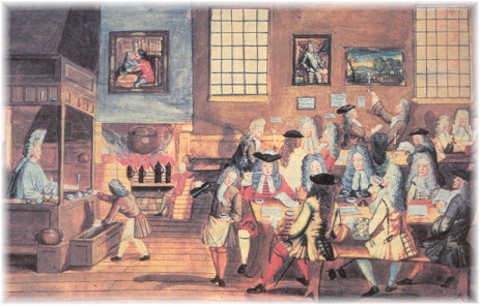 O café era uma bebida tão popular entre as elites europeias do século XVII e XVII, quanto o vinho e a cerveja (MONTANARI, 2004, p. 111-112), ao ponto de que em alguns países houve restrições para seu consumo, pois o café foi visto de forma subversiva, fosse pelo fato de ameaçar outras indústrias de bebida ou por ser um vetor para reunir pessoas e ideias, que foram consideradas em alguns casos subversivas, pois algumas dessas reuniões se debatiam questões políticas contra o governo ou os governantes.