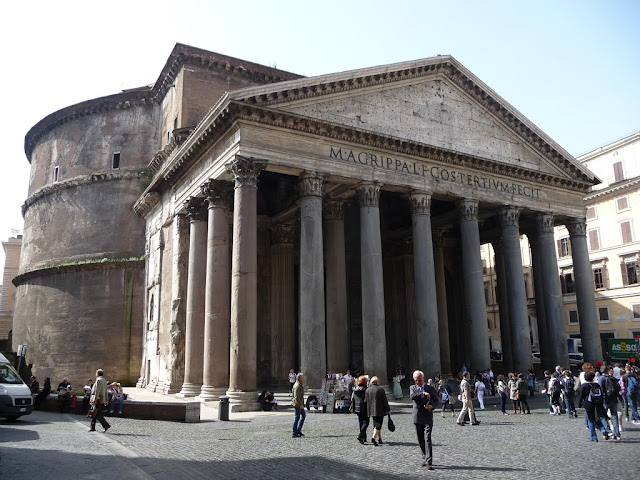 | O Panteão em Roma. Antigo templo romano dedicado a todos os deuses romanos, foi convertido em igreja no século VII, desde então é a Igreja de Santa Maria e os Mártires. |