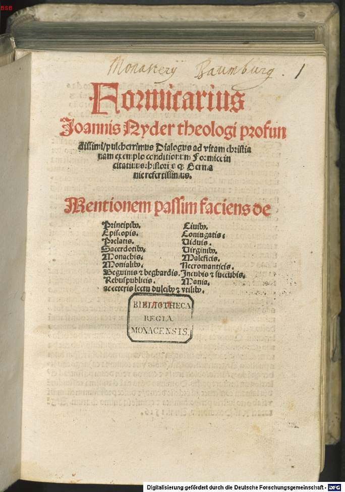 | Frontispício de uma edição do Malleus Maleficarum, impresso em Veneza em 1576. |