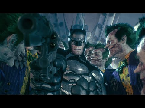 | Cena do jogo Batman: Arkham Knight (2015). Aqui o Coringa tenta o Batman a quebrar seu juramento de não matar. |